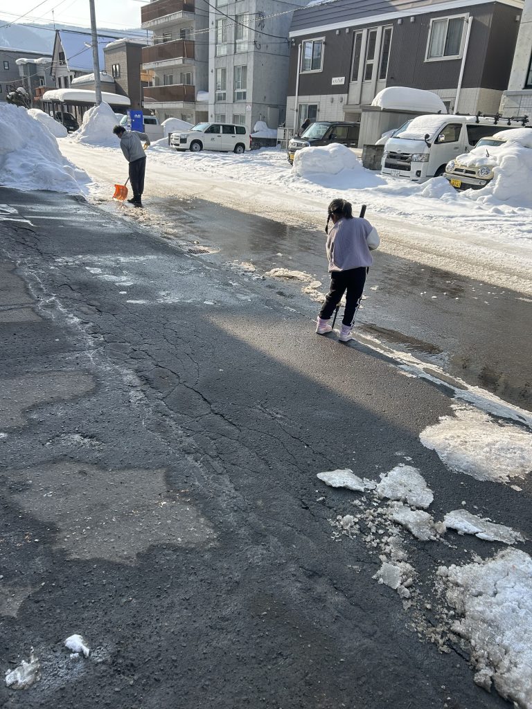 雪かきや氷割りをしてくれたおかげで、すっかりとけてきました。